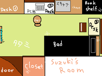 ①勉強用。小学校入る時に買ってもらった学習机です。勉強する時はここでします。